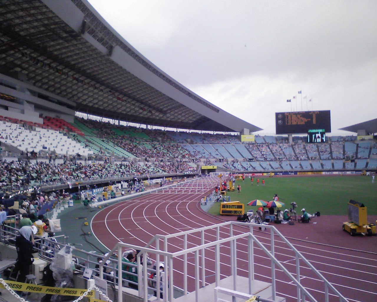 担当国、ナイジェリアの選手が110mハードルに出場するので応援に行った。残念ながら準決勝には残らなかったが、選手が呼ばれてTVに映ったり、走る姿は観ているだけでうれしくなる。