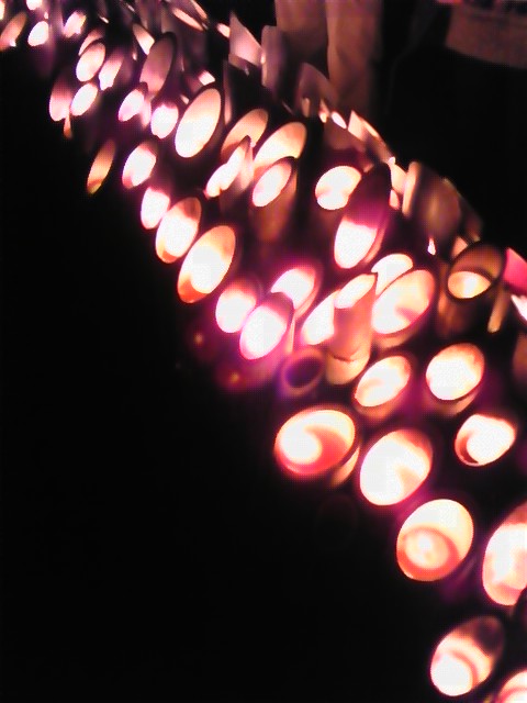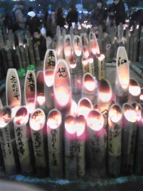 ろうそくの灯かすかにゆれる竹中に思いをこめて冷たき空に