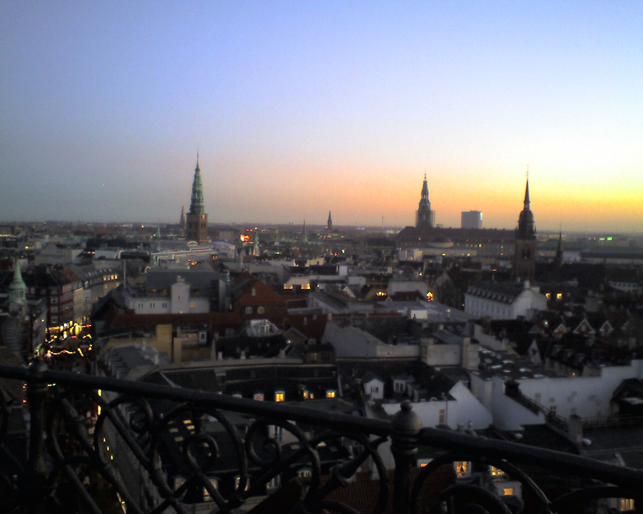 塔の上から見た日が沈み行くコペンハーゲン