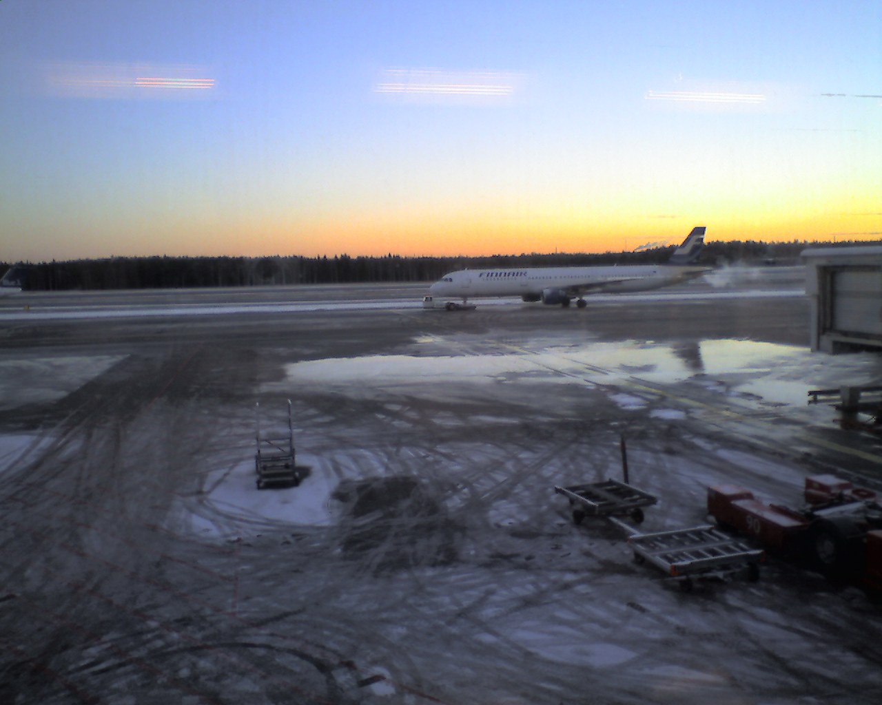 ヘルシンキは今日は雪、雪のためか?コペンハーゲン行きのフライトはゲート変更、またディレイか?