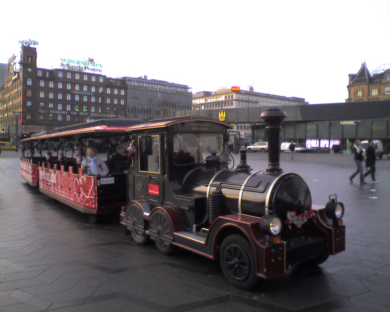市庁舎前ではおもちゃのような機関車が