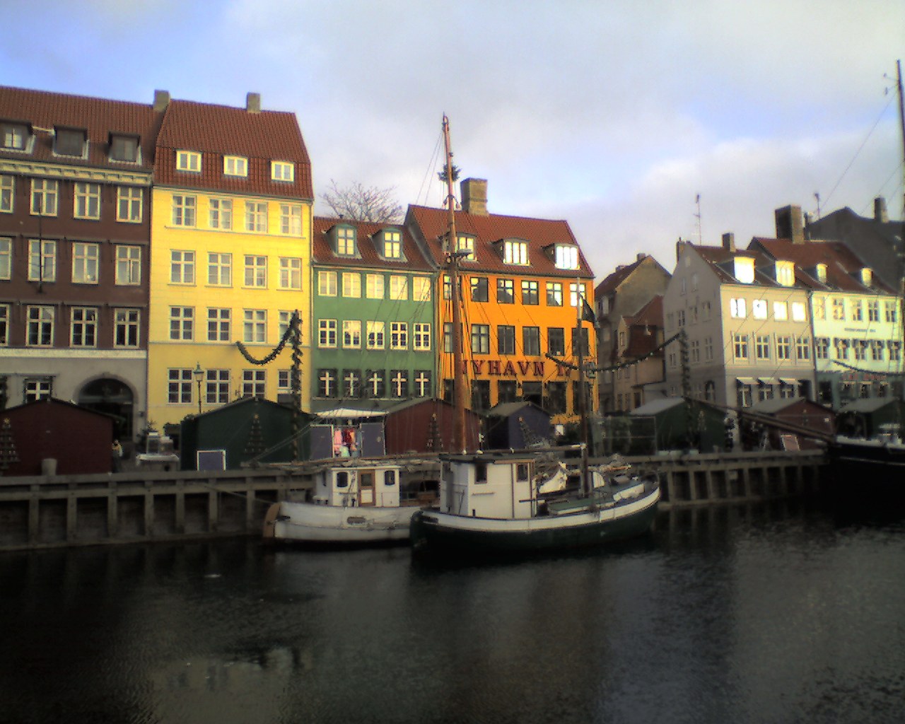 昔の港町、夜はきれいなイルミネーション、夜店も、そしてレストランが