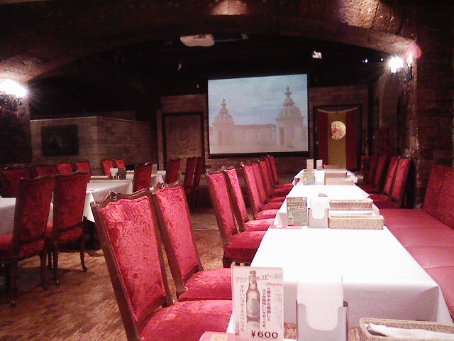 お昼ご飯を食べようと入った店、意外に大きな店で奥には舞台も。