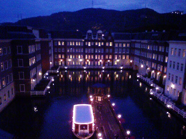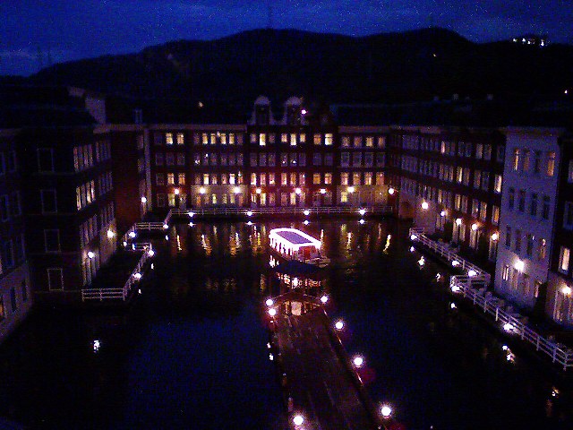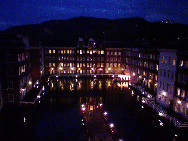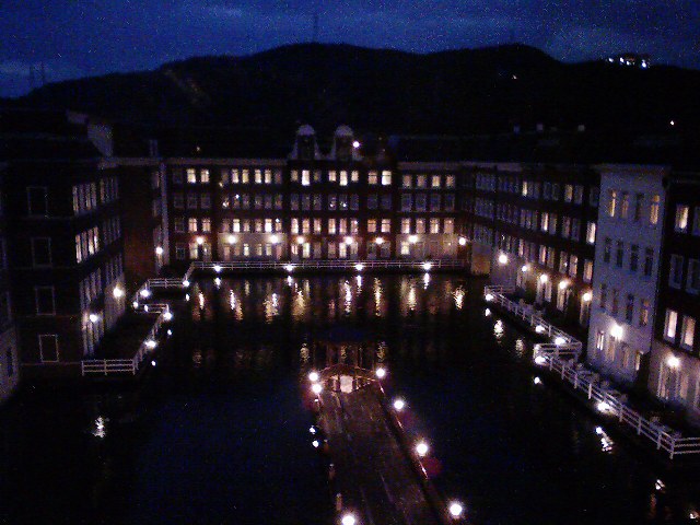 まずはハウステンボス内(実はフリーエリアにあったが)ホテルヨーロッパ。レセプションも豪華、部屋もなかなか良いね、部屋の外はホテルに囲まれた中池、ホテル客がたどり着く桟橋も真下に。
