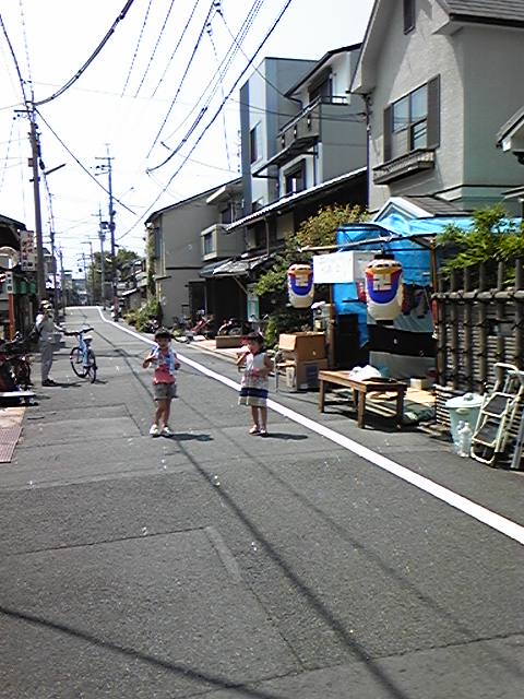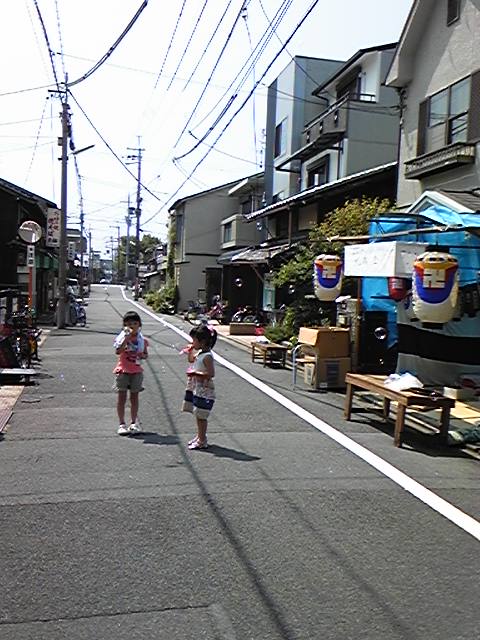 夜店まえ荷物を置いては準備よし