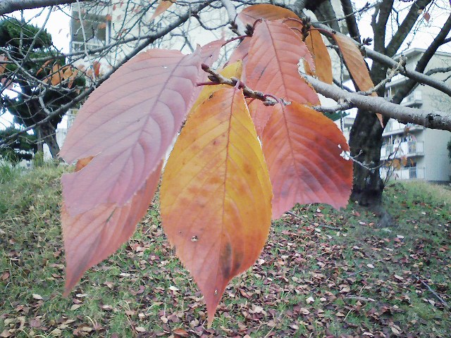 「秋の午後赤い木々を見に公園へ」