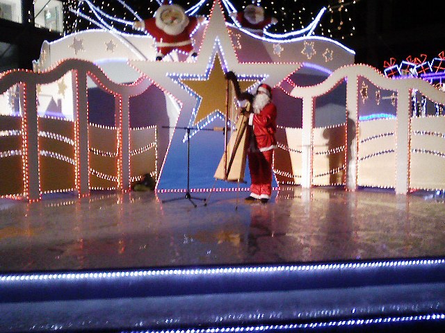 「ツリーの下でサンタのハーブ演奏聞いてるはずがみんなカメラを」