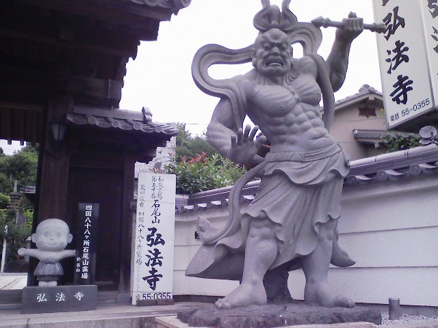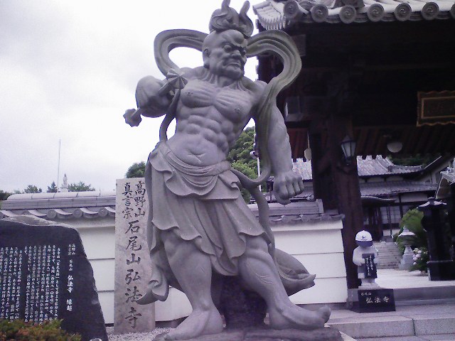 「石尾山和泉霊場足を止めあうんの石像邪鬼を払うと」