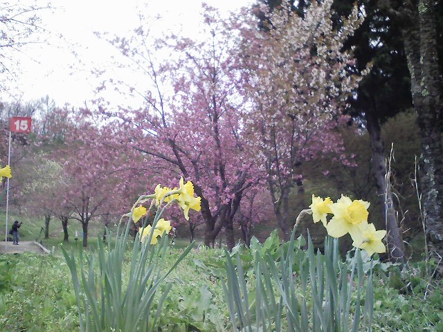 「水仙と八重の桜であでやかに」