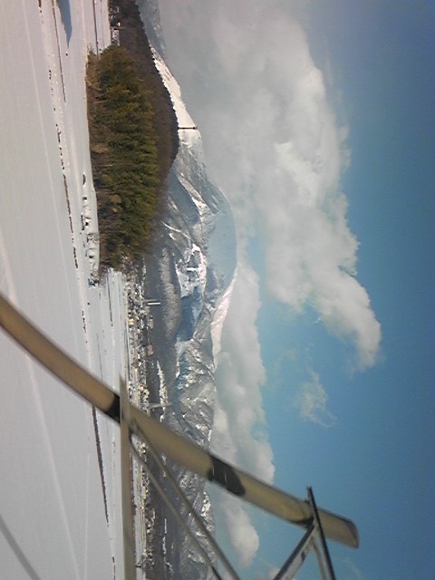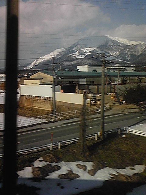 白き地に白き山琵琶湖目指して